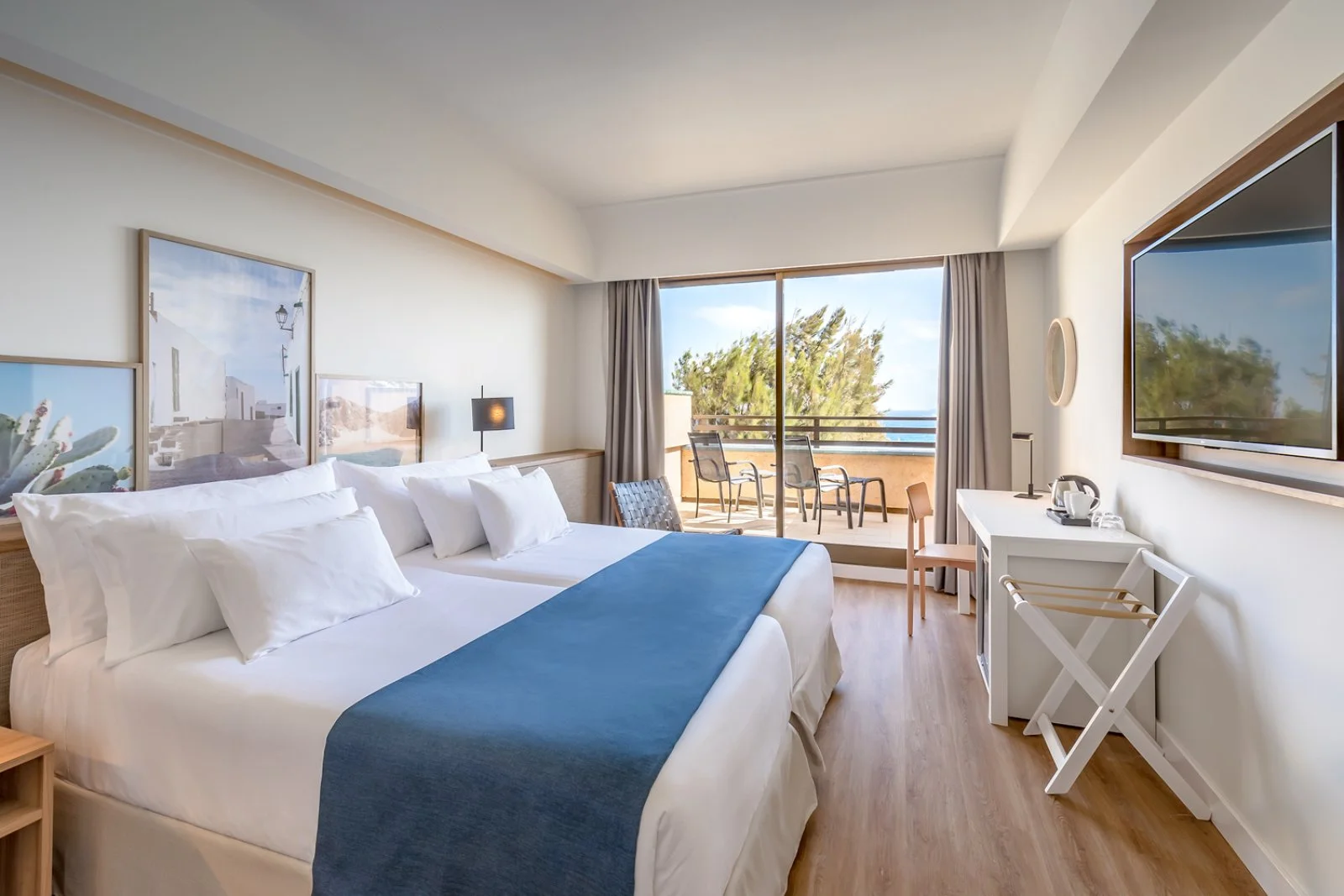 659 camere (32 m²), disposte su 3 edifici di 6 piani, tutte con servizi privati, aria condizionata, TV satellitare, connessione wi-fi gratuita, minifrigo, asciugacapelli, balcone o terrazza. A pagamento, telefono con linea diretta esterna, cassetta di sicurezza, minibar. Disponibili con supplemento camere vista mare, Junior suite e Family Suite più ampie.