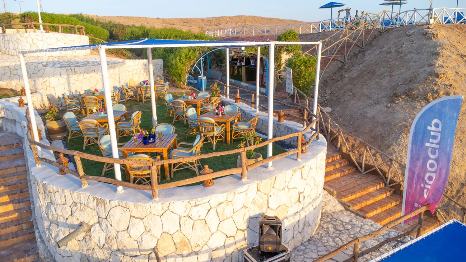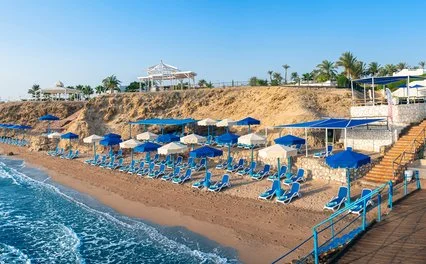 Tower Bay, il Ciaoclub Club Reef Beach Resort sorge a 6 km da Naama Bay; si affaccia su una delle baie più spettacolari di Sharm El Sheikh, con una piccola spiaggia di sabbia mista a ciottoli a 100 metri e vista sull'isola di Tiran. La splendida posizione regala all'hotel un'ambientazione ideale per un soggiorno benessere. Il Resort digrada verso 2 calette lambite dal mare che a pochi metri dalla riva rivela i variopinti fondali del reef. Wi-Fi nelle aree comuni. Due navette a settimana, una per Naama Bay e una per Sharm Vecchia. Aeroporto a 20 km.