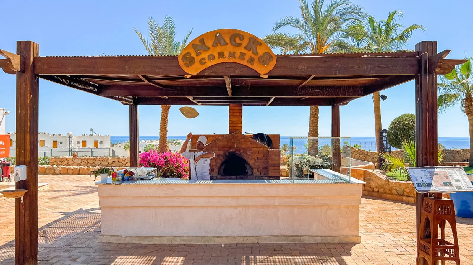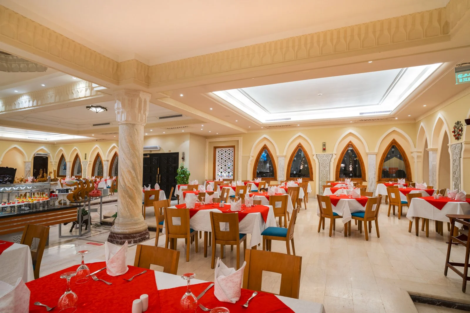 Ristorante principale aperto per colazione, pranzo e cena, con servizio a buffet e chef italiano. Possibilità di pranzare con pizza cotta nel forno a legna nella suggestiva nuova terrazza panoramica in spiaggia. 4 bar di cui uno presso la piscina e uno in spiaggia. A pagamento: ristorante à la carte Layla, con menù a base di pesce servito presso la terrazza sulla spiaggia e menù BBQ o pizza (una cena a soggiorno inclusa). Cenoni di Natale, Capodanno e Ferragosto inclusi.