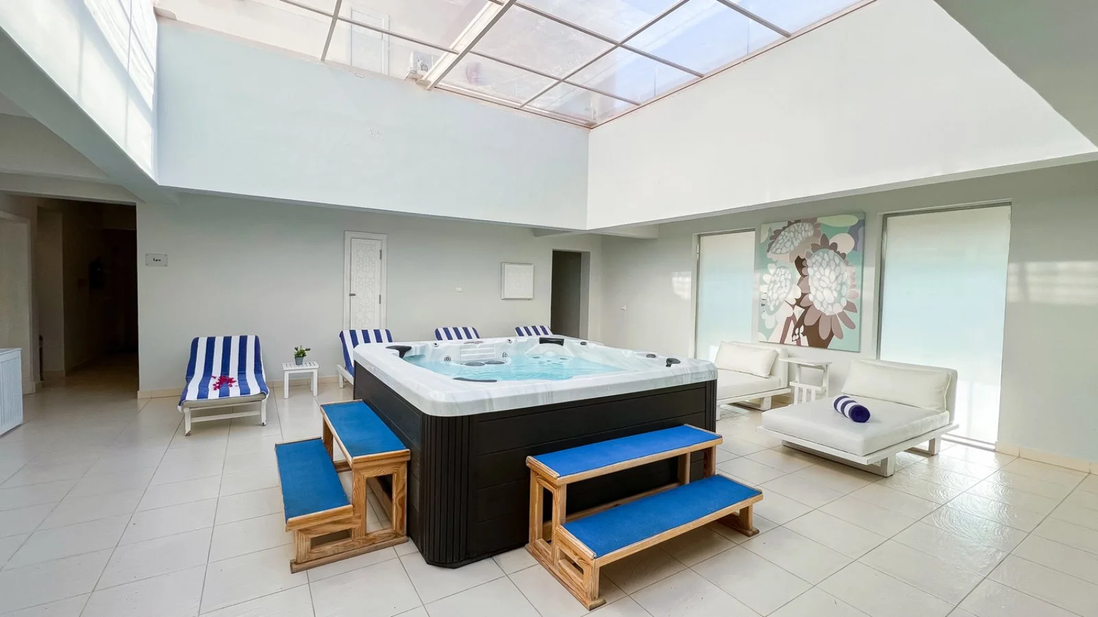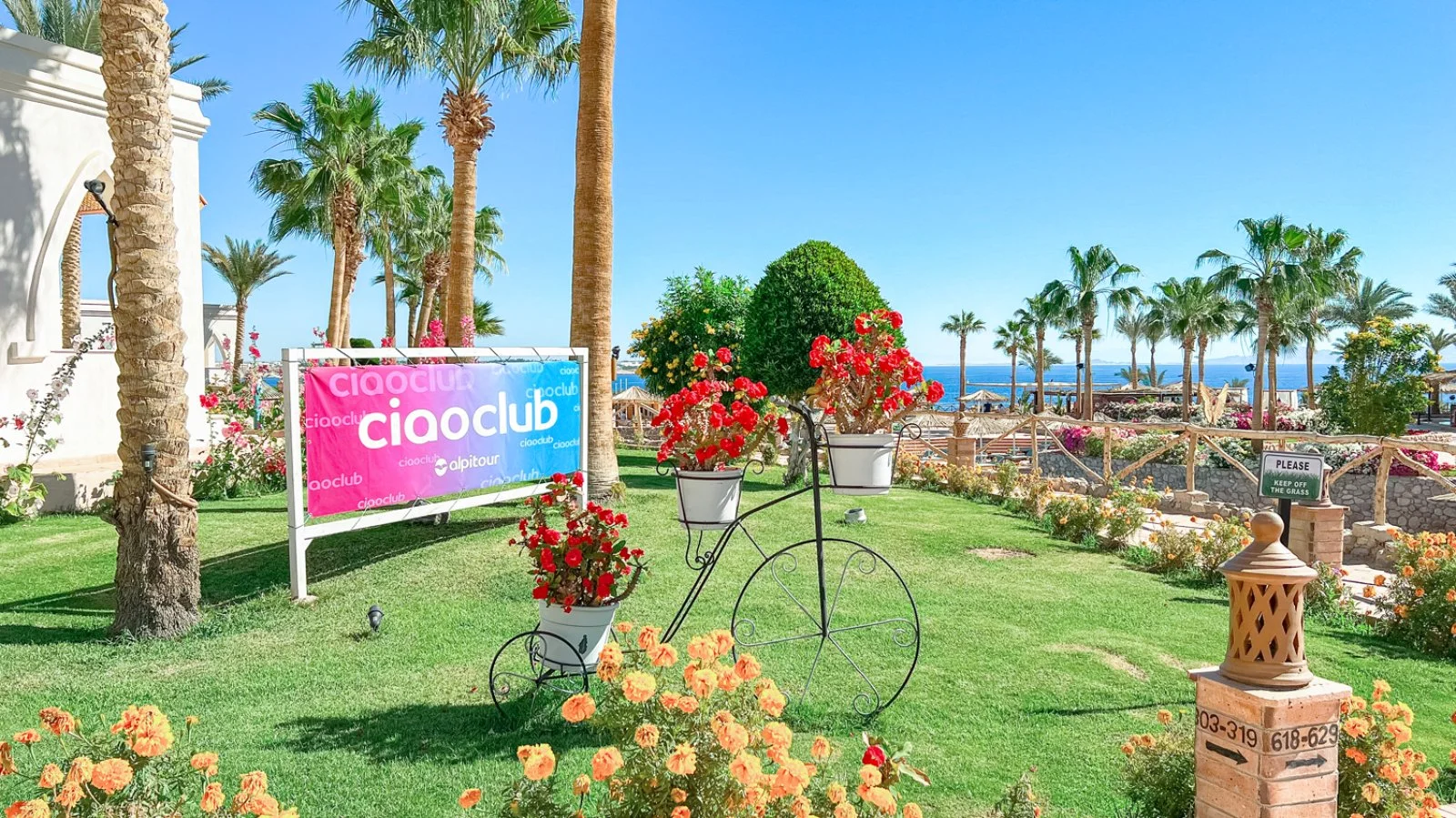 Spiaggia di sabbia mista a ciottoli a 160 m; una delle due calette è dotata di pontile per raggiungere il mare e la barriera corallina. 4 piscine, di cui 1 con area separata per bambini e 2 riscaldate nei mesi invernali. Ombrelloni, lettini e teli mare disponibili gratuitamente in piscina e in spiaggia.