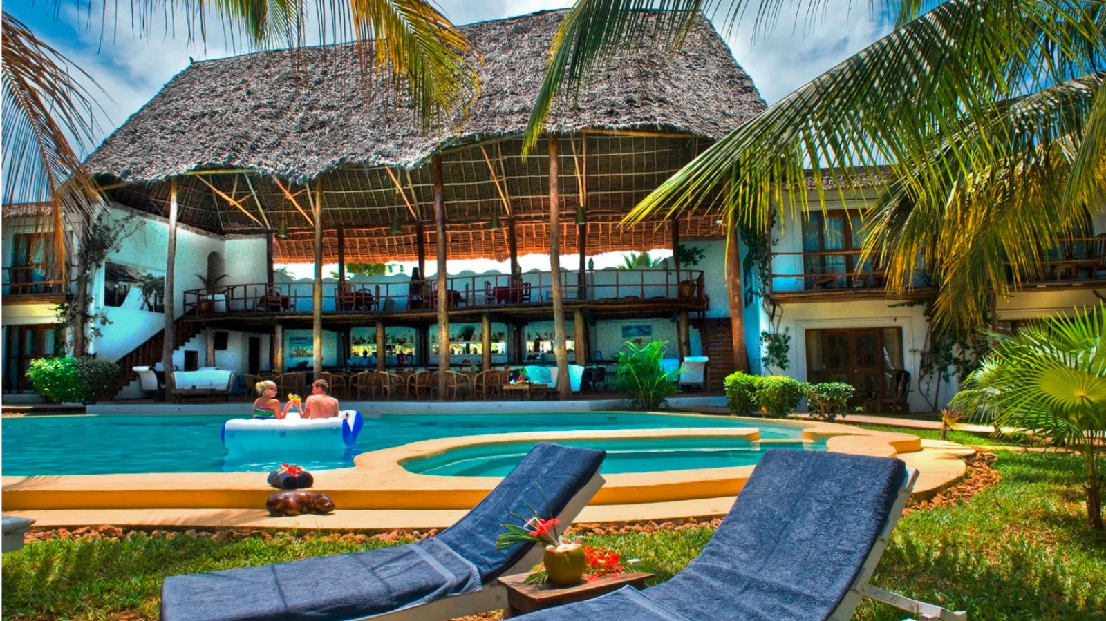 L’hotel dista circa 55 km dall’aeroporto e da Stone Town e circa 200 m dal piccolo villaggio di Nungwi, raggiungibile con una piacevole passeggiata lungo il mare, famoso per i suoi tramonti infuocati e il mare cristallino. Realizzato fondendo gli stili moderno e zanzibarino, si sviluppa perpendicolarmente al mare, con un piacevole vialetto che va dalla reception alla magnifica spiaggia attrezzata e lungo il quale si trovano le camere e la piscina, il bar e i ristoranti.