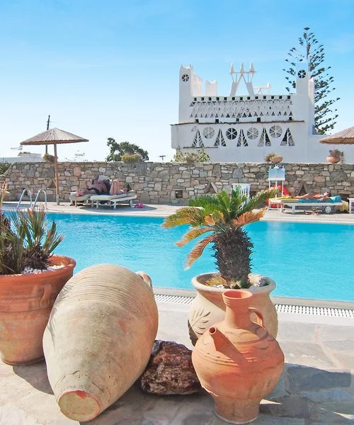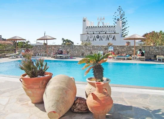 Si tratta della sistemazione ideale per coppie che desiderano trascorrere una piacevole vacanza lontani dal trambusto del centro cittadino, in una location leggermente defilata. L’ambiente è accogliente e familiare ed il personale sempre pronto a regalarvi un sorriso, fin dal primo mattino, quando gusterete la buona colazione. L’hotel è dotato di una piacevole piscina mentre, se preferite il mare, le spiagge di Plati Yialos e Ornos sono velocemente raggiungibili con l’auto che Eden vi suggerisce di noleggiare. I più sportivi, invece, con una bella passeggiata potranno raggiungere anche a piedi la spiaggia di Megali Ammos e la Chora di Mykonos Town, dove assaporare la gustosa cucina greca in una delle graziose taverne e passeggiare poi per i vicoli, in un susseguirsi di negozietti e locali notturni. Da segnalare il ristorante Sea Satin Market, suggestivamente collocato tra il mare e i mulini, e i cocktail bar Scarpa, Galleraki e Bao's nella movimentata Little Venice.