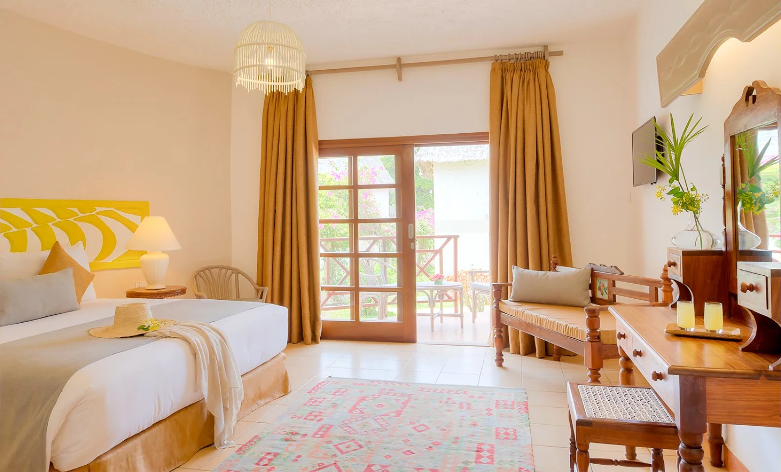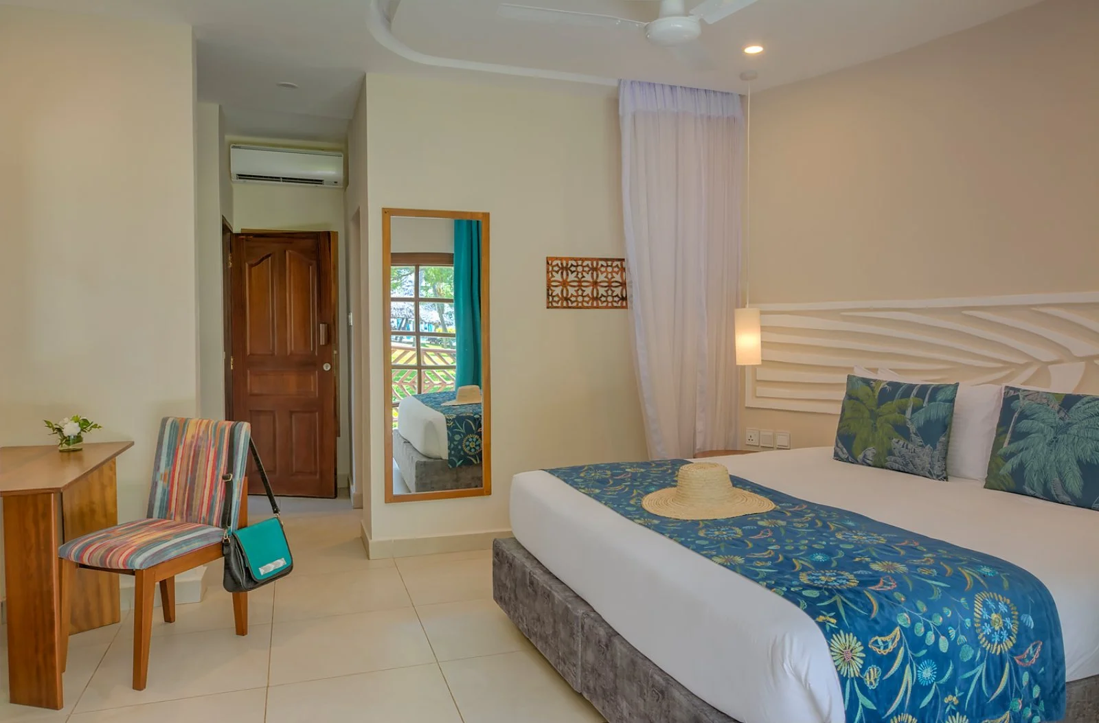 164 camere superior vista giardino (27 m2) distribuite in bungalow di due piani con tetto in makuti con 4 camere ciascuno. Tutte le unità dispongono di servizi privati, asciugacapelli, macchina per tè e caffè, aria condizionata, telefono, tv satellitare, connessione wi-fi gratuita, cassetta di sicurezza, balcone o veranda e, su richiesta, minifrigo. Disponibili, con supplemento, camere premium vista giardino (32 m2) più ampie e recentemente rinfrescate e deluxe vista giardino (27 m2), completamente rinnovate.