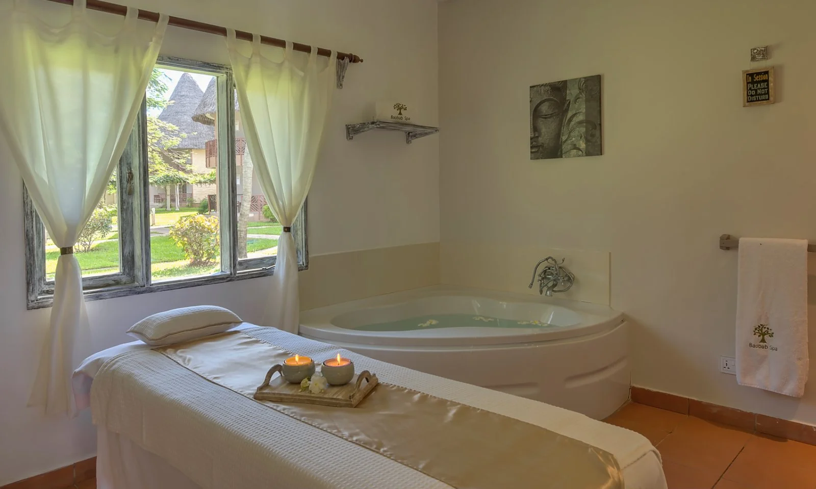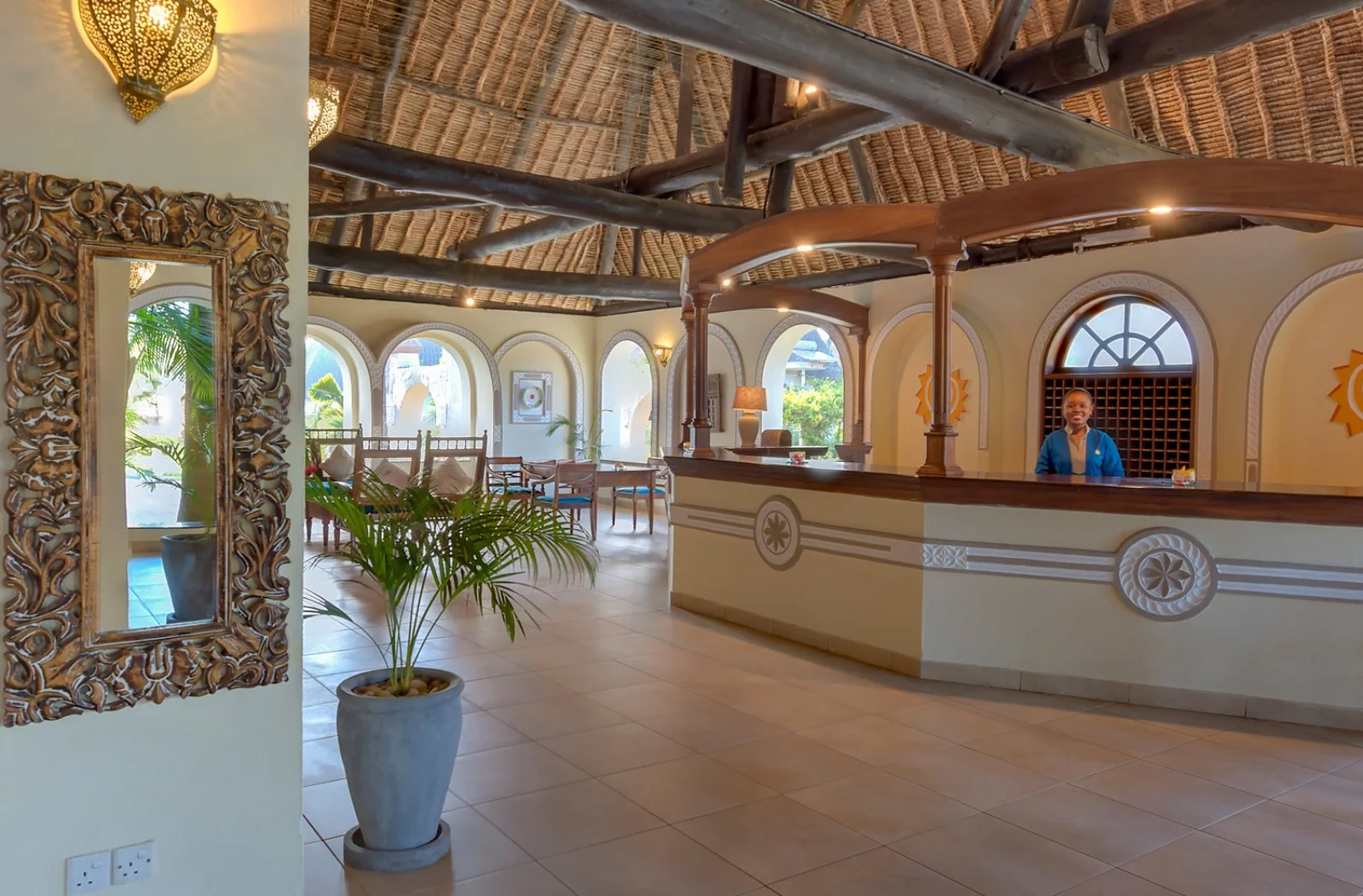 Diani, direttamente sulla spiaggia, a 10 km dal centro, 40 da Mombasa e 55 dal suo aeroporto. Il trasferimento dall’aeroporto dura 60 minuti circa a seconda dei tempi di attesa per l’attraversamento della baia di Mombasa (in traghetto o tramite il nuovo ponte)
