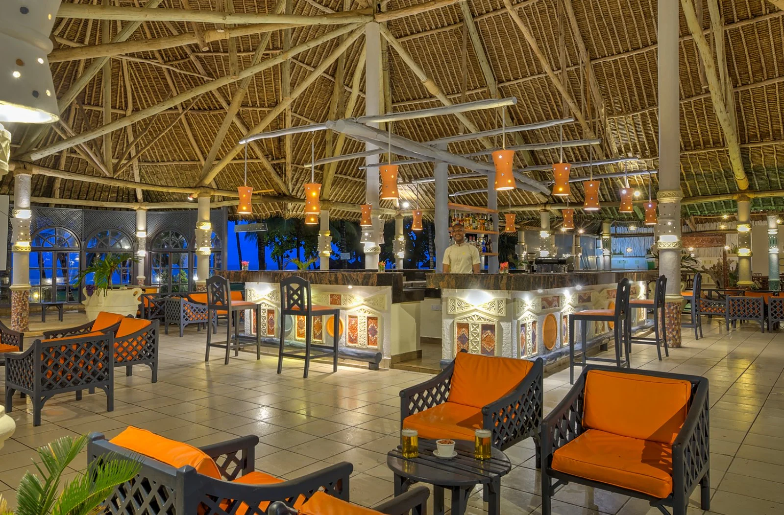 4 ristoranti di cui, uno principale a buffet il Karamu, e, previa prenotazione 3 à la carte aperti a cena tra cui uno con specialità indiane il Jungle , uno con specialità italiane e pizza l’Olive Kitchen presso l’adiacente Neptune Paradise e, a pagamento il Jahazi, con specialità di pesce presso il Neptune Palm. 2 bar di cui uno principale e uno nell’area piscina.