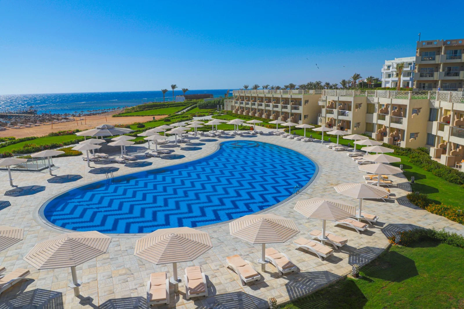 Il nuovissimo SeaClub Sirena Beach Resort & Spa si trova su un tratto di costa tra i più suggestivi del Mar Rosso, dove il deserto e le acque turchesi si incontrano in uno scenario unico. La barriera ricca e variopinta è raggiungibile tramite i 2 pontili del Resort, uno dei quali, recentemente inaugurato, dà accesso a 3 magnifiche piscine naturali nel reef ancora del tutto incontaminate; è anche possibile accedere ad una grande piscina naturale direttamente dalla spiaggia presso l’attiguo Bravo Fantazia Resort, appartenente alla stessa proprietà. Il ristorante principale, in posizione panoramica, offre una vista mozzafiato sulla baia, mentre l’area solo adulti assicura totale relax e massima riservatezza.
