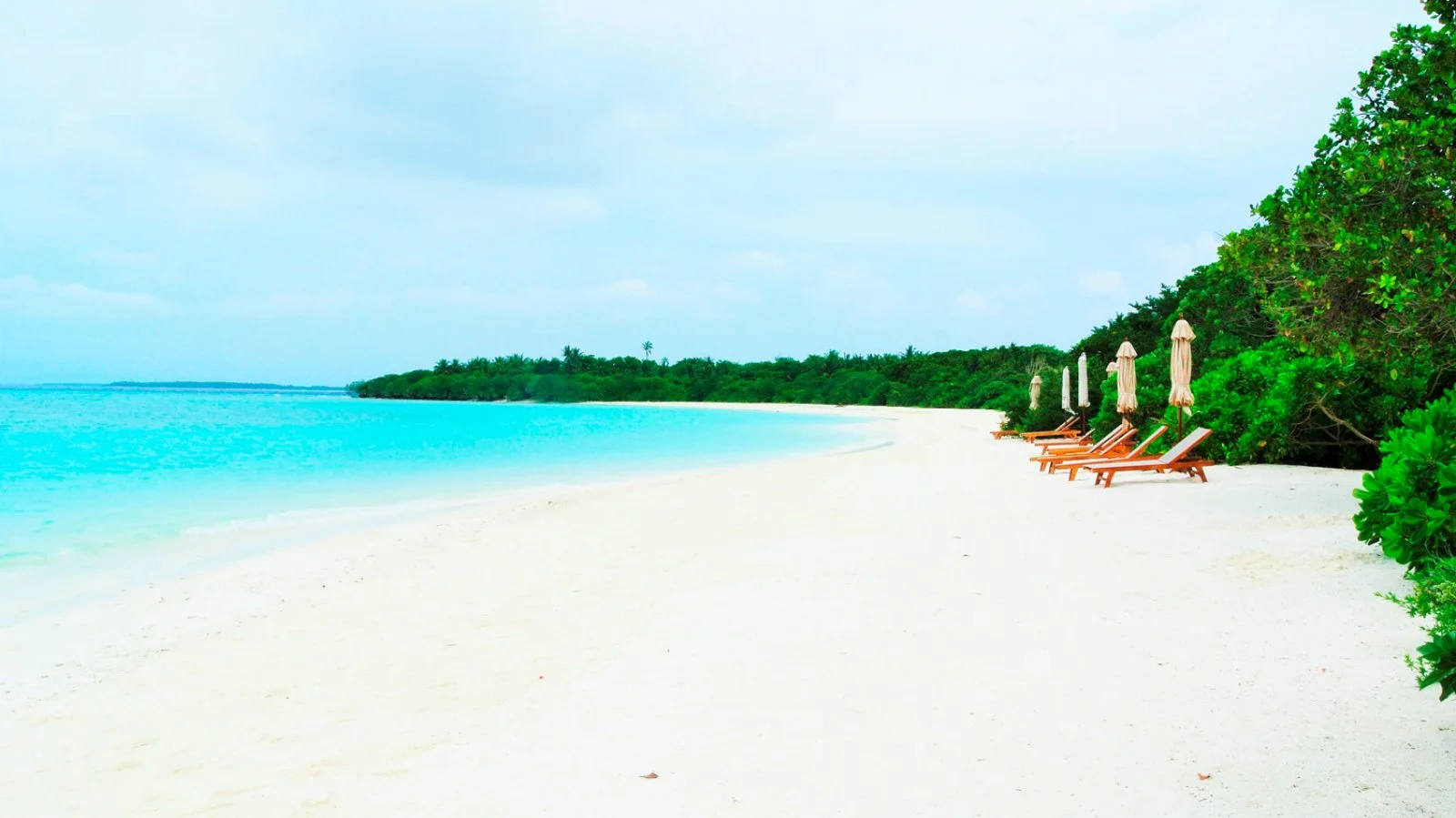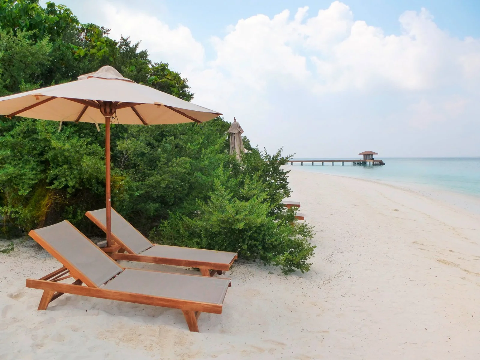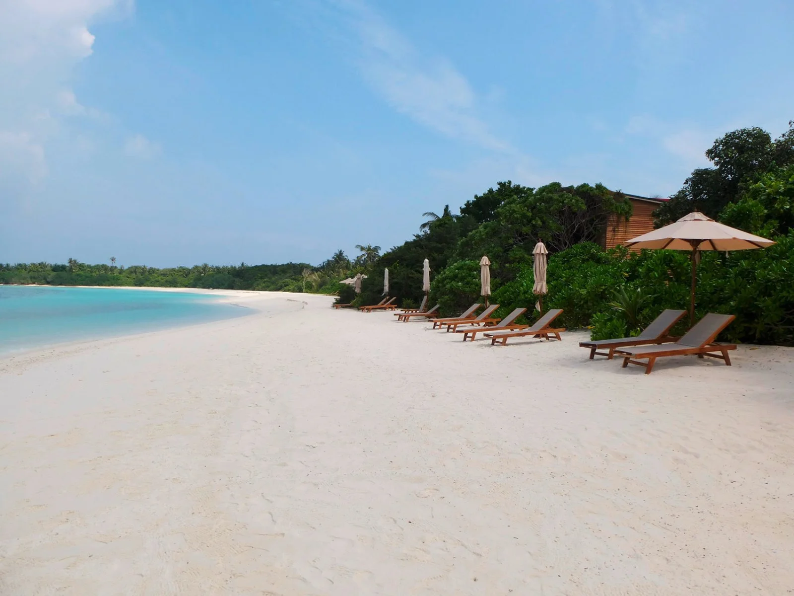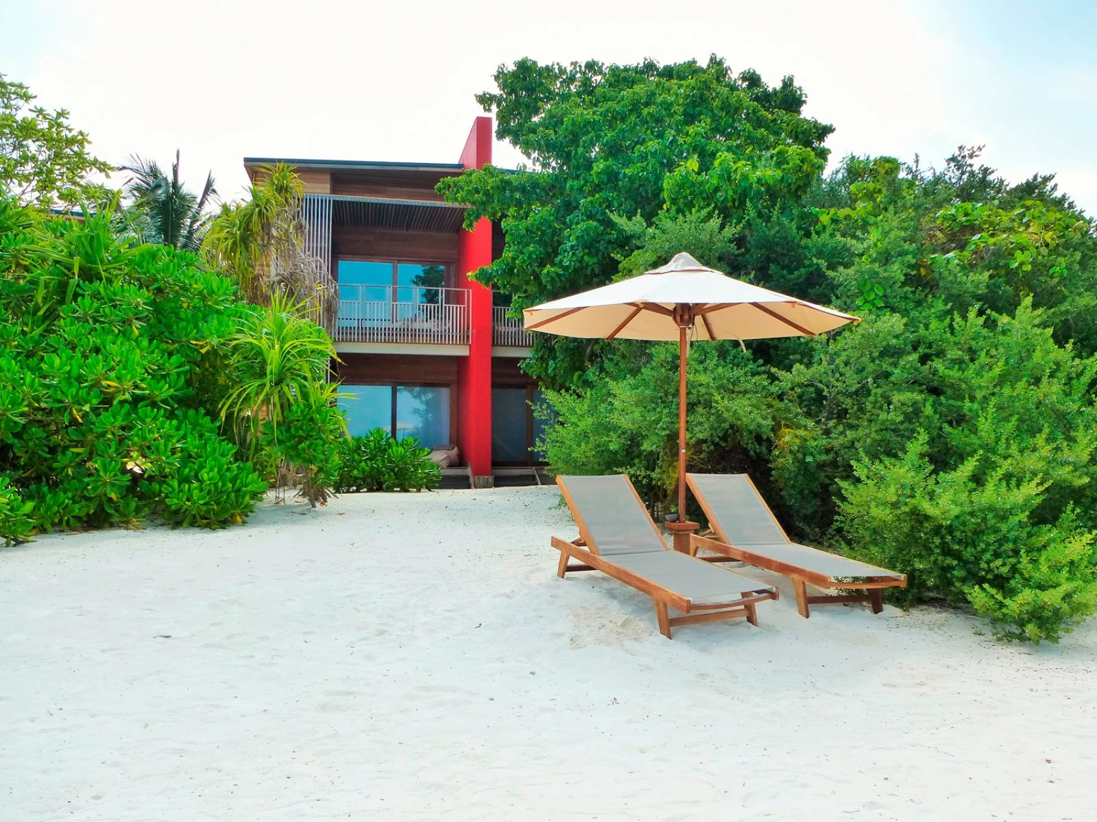 privata di sabbia con lettini, ombrelloni e teli mare e circondata da palme che garantiscono ampie zone d’ombra. Barriera corallina raggiungibile a nuoto o tramite canoa.