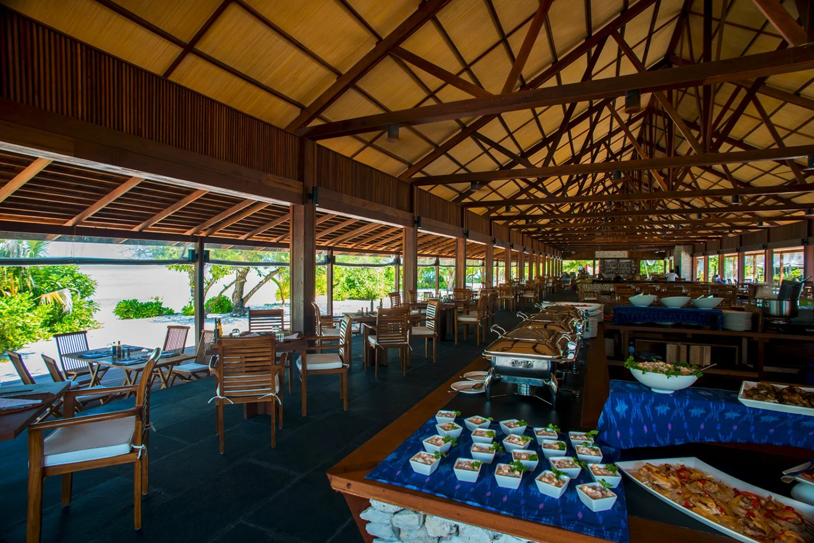 un ristorante con servizio a buffet. 3 bar, tra cui il Juice in piscina, il Raanee sulla spiaggia ed una barca galleggiante (transfer gratuito dalle 18) dove, a pagamento, sono servite bevande alcoliche. Bevande incluse ai pasti: acqua. NB: su tutta l’isola non è permesso il consumo di bevande alcoliche (eccetto che sulla barca).