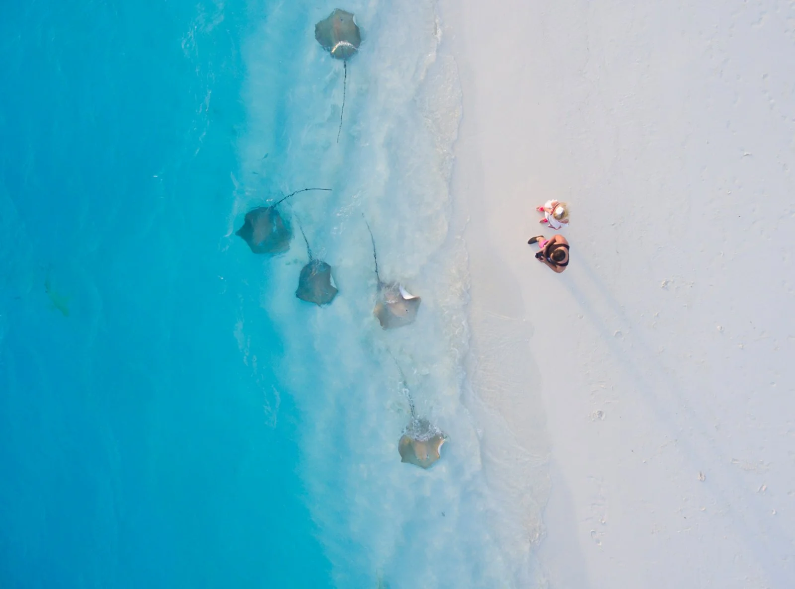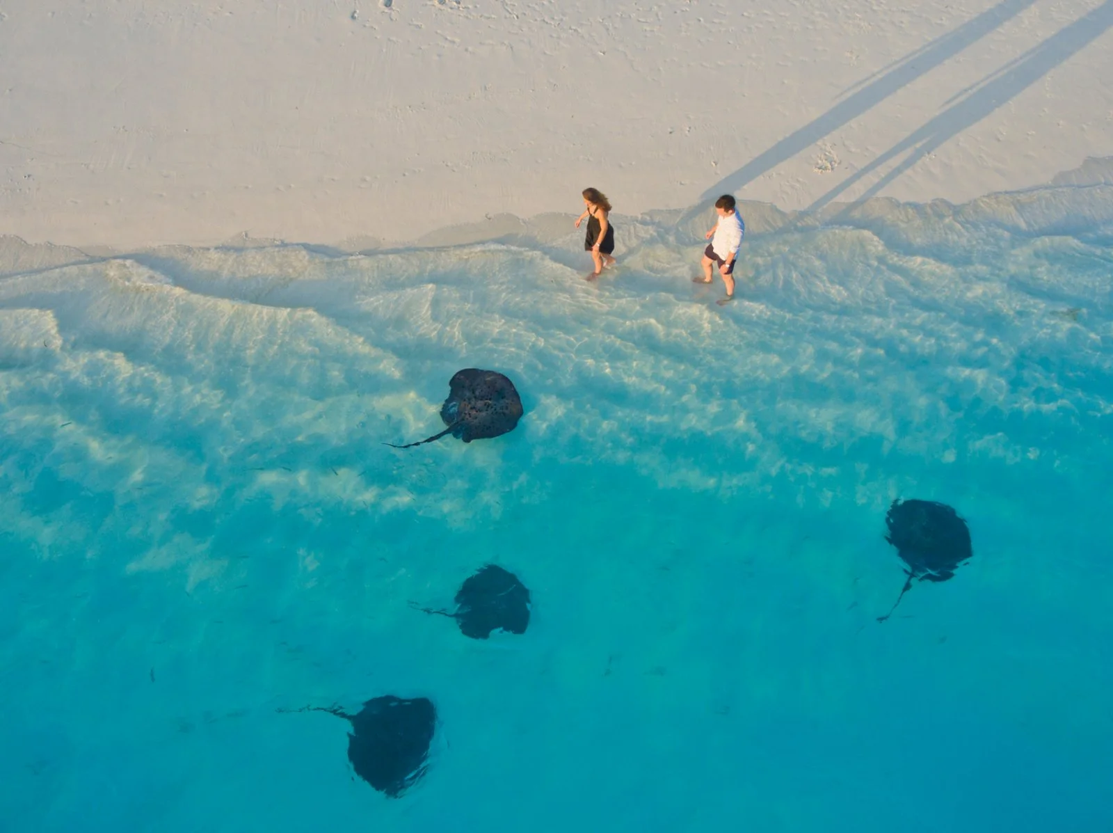 gruppi di mante e squaletti di barriera che si avvicinano alla riva per farsi fotografare in cambio di qualche pesce!