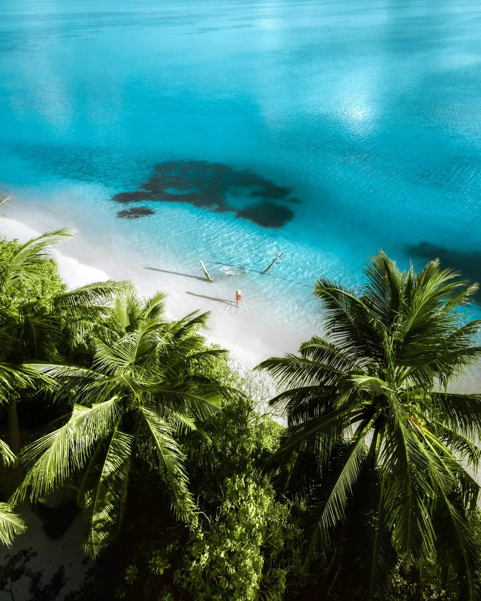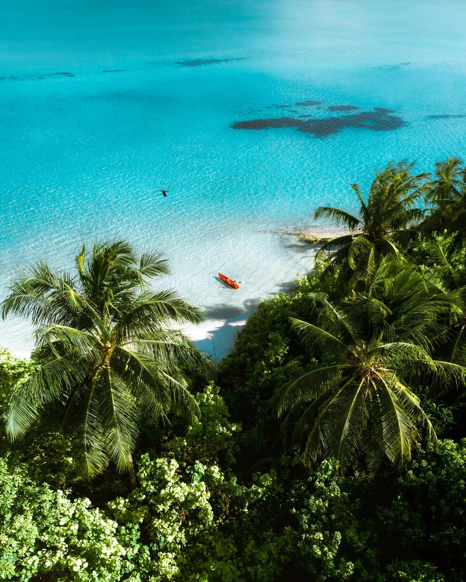 una delle isole più estese delle Maldive, che ospita il più grande resort dell’arcipelago. Un’immensa laguna dalle mille sfumature di azzurro e, al centro,