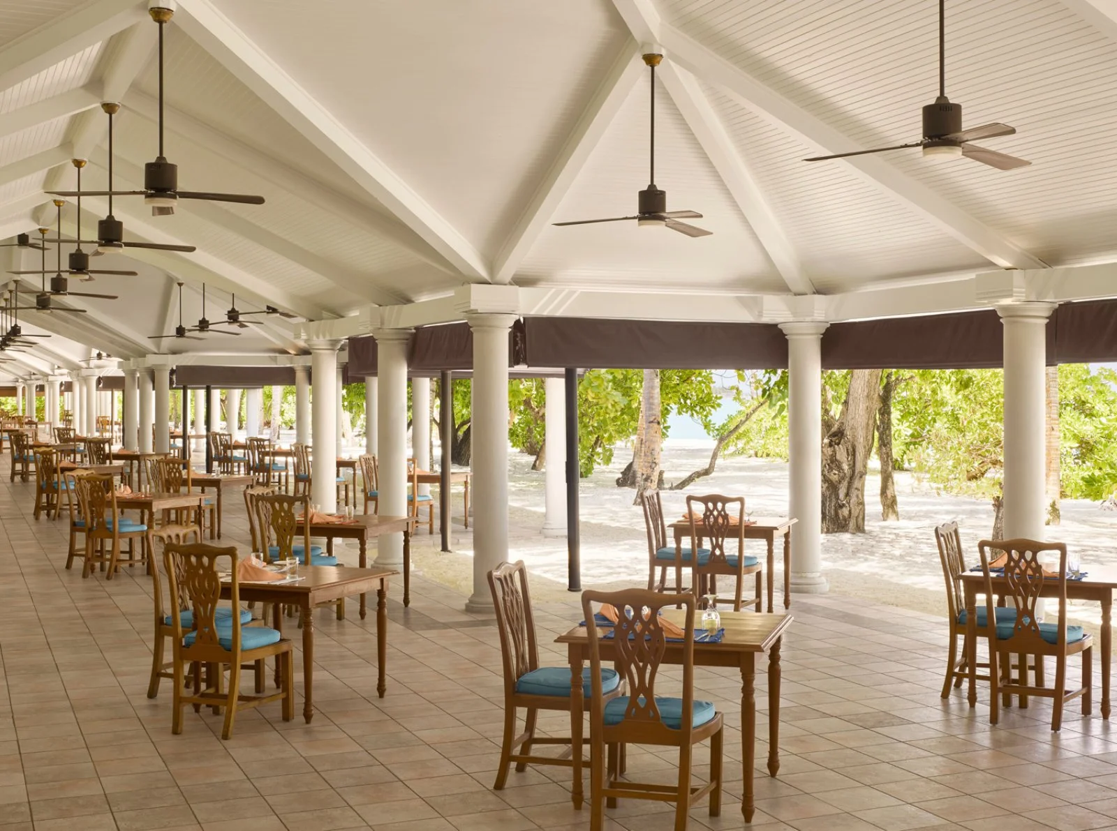 6 ristoranti, 2 principali a buffet Maaniyaa, riservato alle beach villa, e il Southern Star, riservato agli ospiti delle water villa. A pagamento 4 ristoranti à la carte, l'orientale Sun Star, l'italiano Al Pontile, il giapponese Teppanyaki e Zero, con ampia gamma di ortaggi e insalate. 5 bar, tra cui un bar principale, uno sulla spiaggia, uno in piscina, uno snack bar e un bar aperto h24. Bevande incluse ai pasti: acqua, tè e caffè.